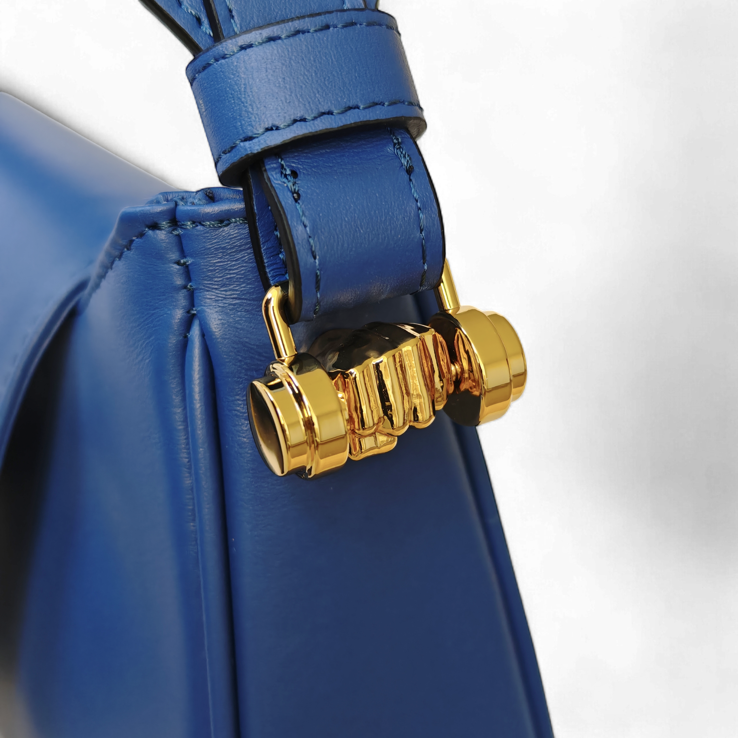 Gli attacchi laterali per manici e tracolle, modellati come un pugno che stringe un manubrio, enfatizzano l’anima sportiva della borsa, reinterpretata in chiave sofisticata e contemporanea.