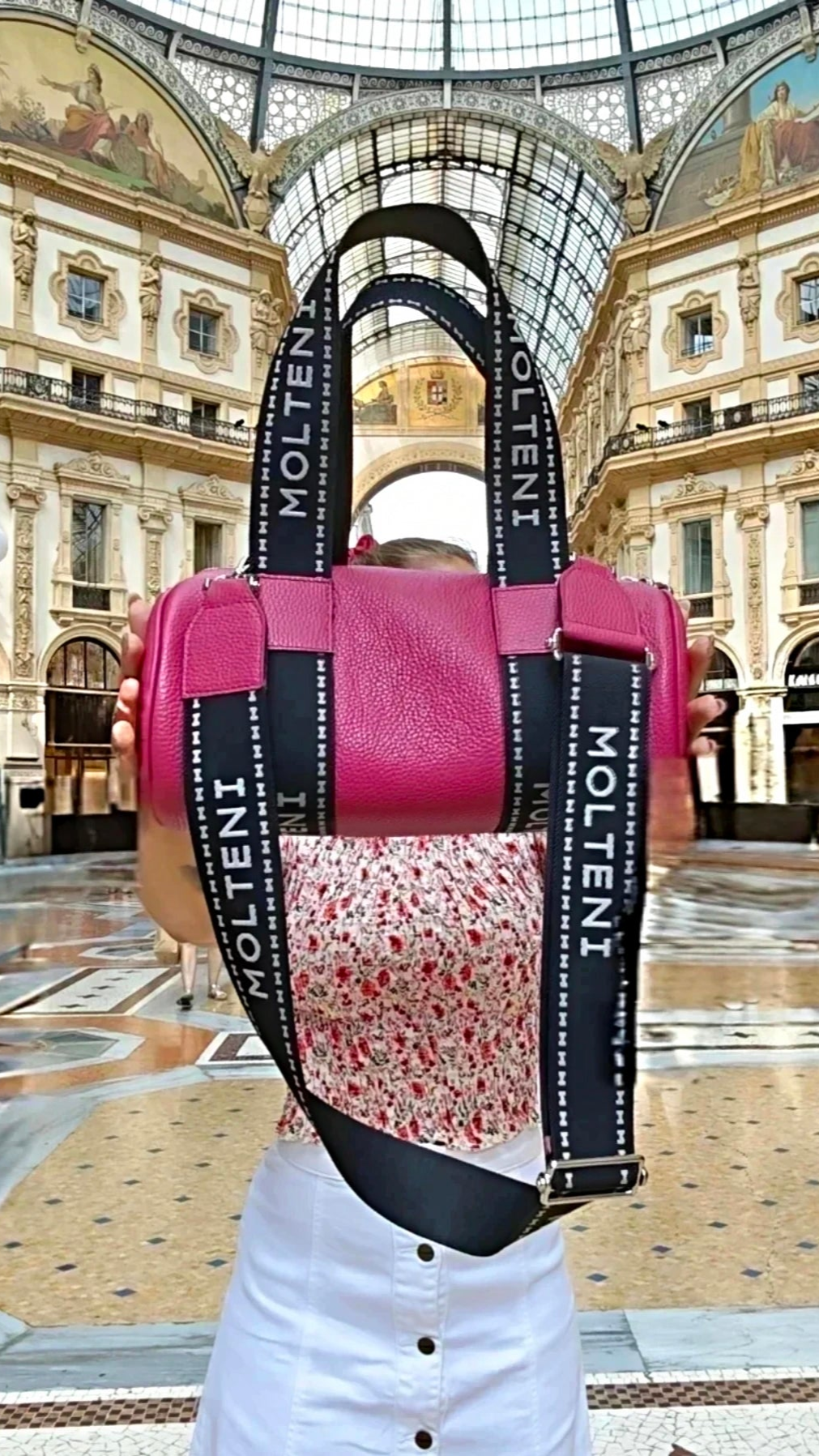NORA small is the small duffle bag by MOLTENI MILANO, its compact size does not prevent it from offering great internal space thanks to its cylindrical shape.