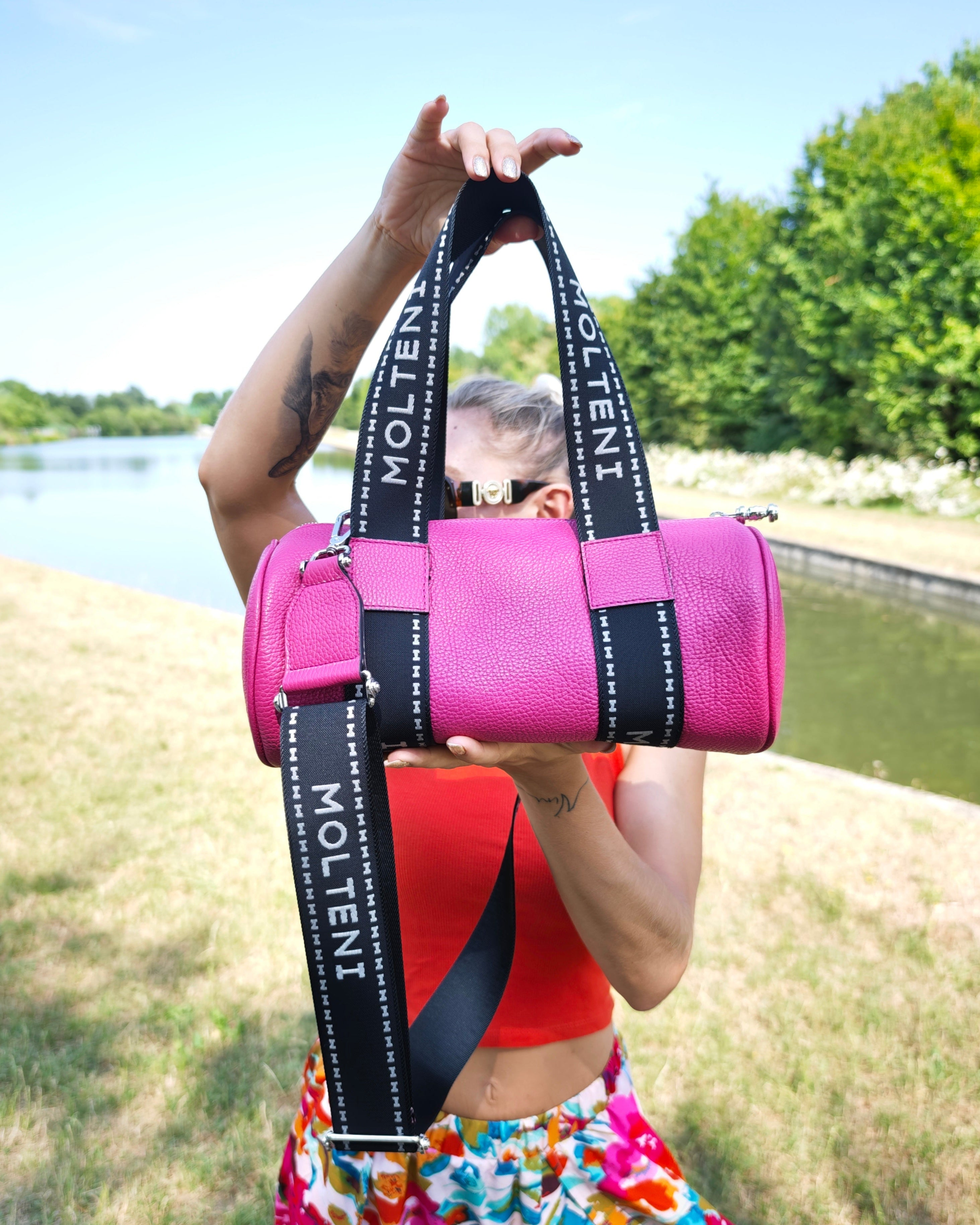 The ELEO medium is MOLTENI MILANO's versatile crossbody bag. It can be carried cross-body, over the shoulder, or by hand, depending on how you adjust the personalized fabric strap that is the distinctive feature of this model.