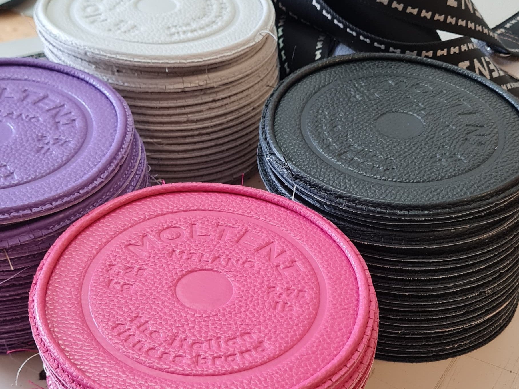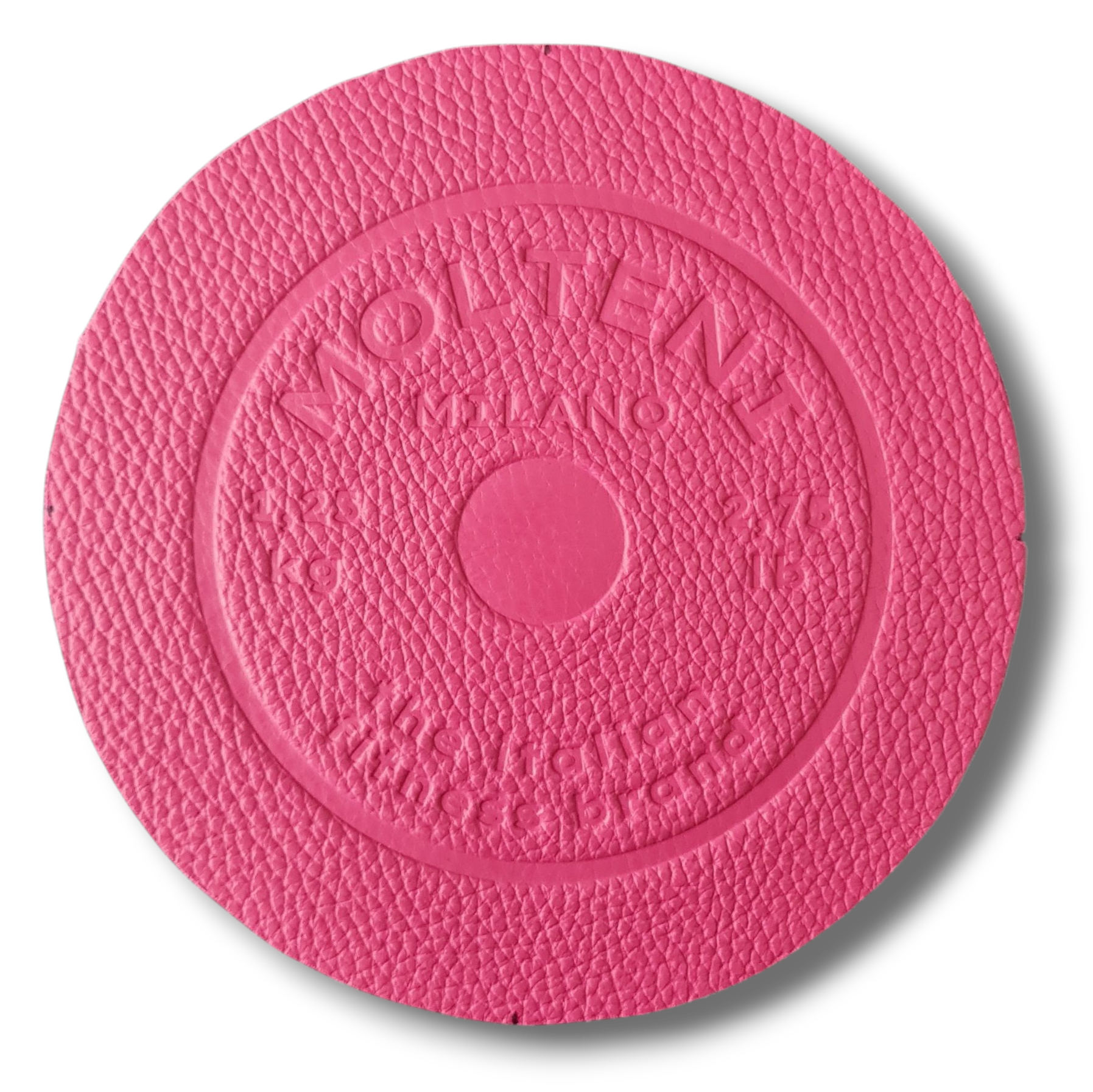 The sides of NORA small are heat-engraved on the leather with the classic design of the 1.25kg weight discs, recalling their shape and size.