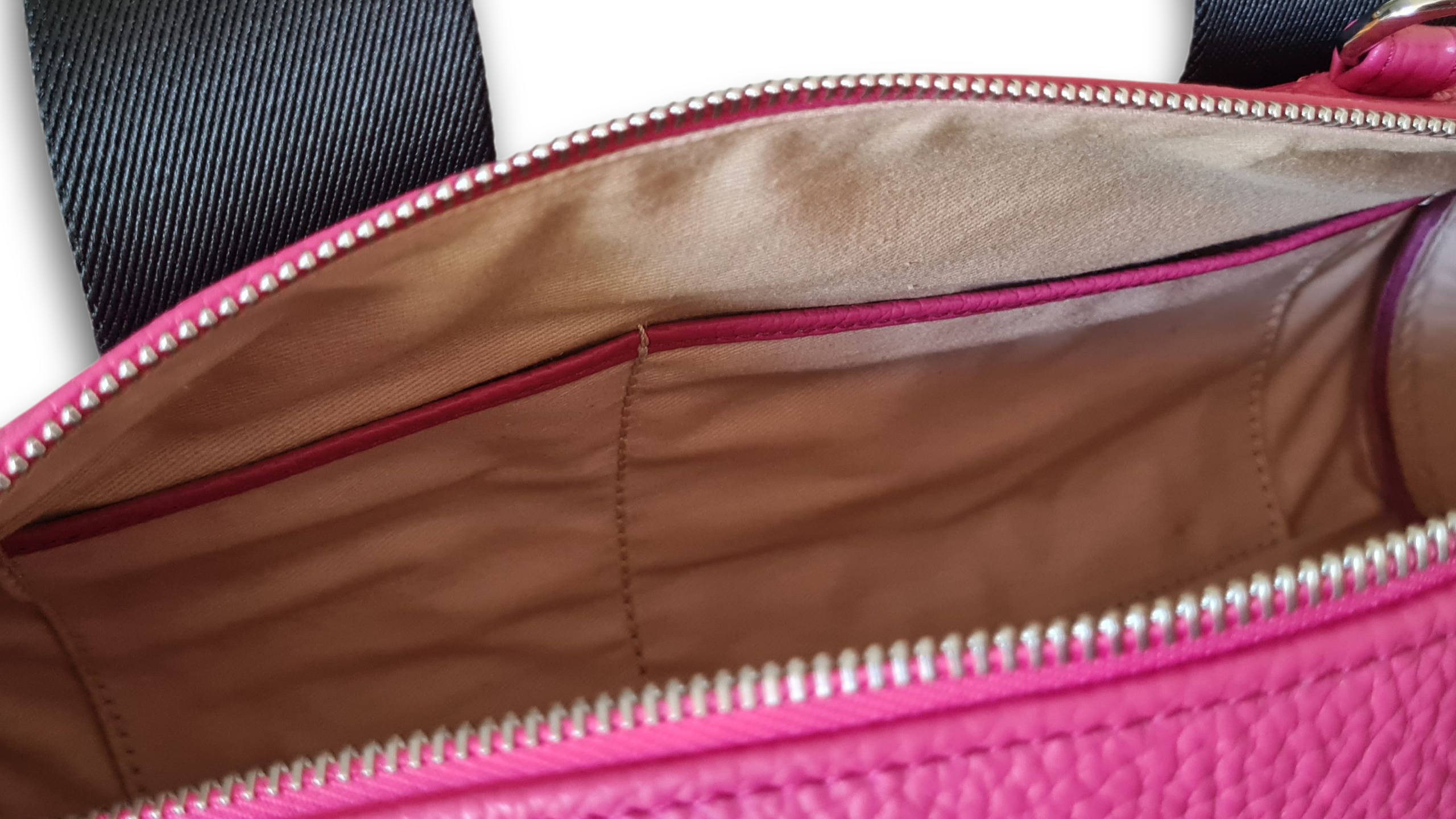 The internal black leather patch is personalized with the brand logo in silver foil. Remember, all our bags are proudly MADE IN ITALY.